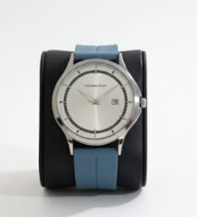 Universe Point Modern Casual Watch – Silver Dial & Sky Blue Rubber Strap