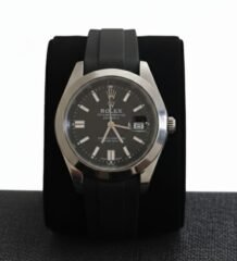 Sporty Rolex Oyster Perpetual Homage Watch – Black Dial, Steel Case & Rubber Strap