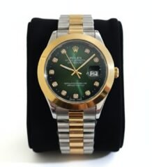 Two-Tone Datejust Homage Watch: Emerald Green Dial, Gold Bezel & Diamond-Style Markers