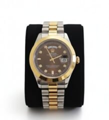 Two-Tone Datejust Homage Watch: Rich Chocolate Dial, Gold Bezel & Diamond-Style Markers