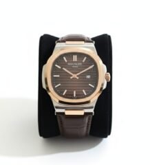 Two-Tone Rose Gold & Steel Integrated Sports Watch – Chocolate Dial & Brown Leather Strap
