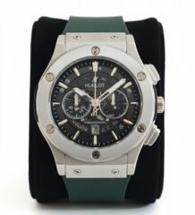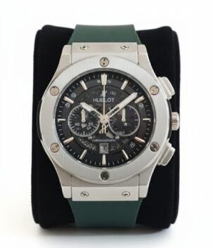 Bold Chronograph Homage Watch – Skeletonized Dial, Steel Case & Forest Green Rubber Strap