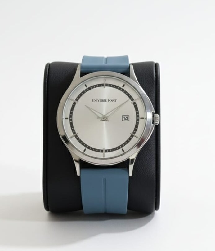 Universe Point Modern Casual Watch – Silver Dial & Sky Blue Rubber Strap